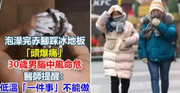 泡澡完赤腳踩冰地板「頭爆痛」30歲男腦中風命危,醫師提醒:低溫時「一件事」不能做
