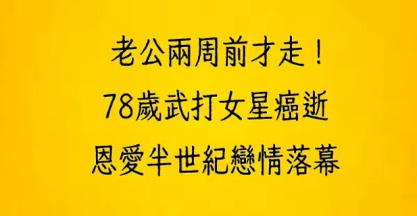 老公兩周前才走!78歲武打女星癌逝 恩愛半世紀戀情落幕