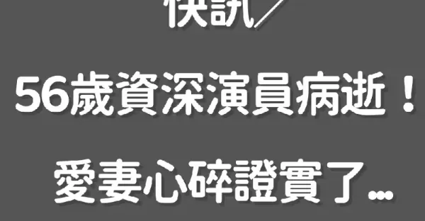 快訊/56歲資深演員病逝!愛妻心碎證實了...