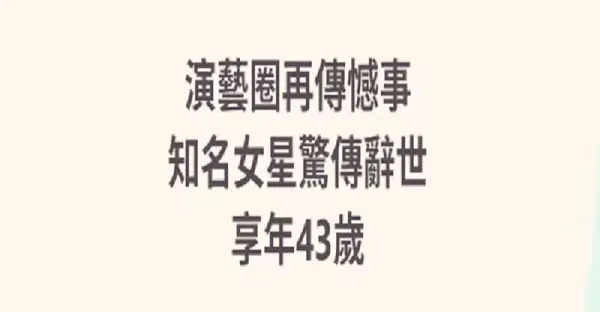 演藝圈再傳憾事!知名女星驚傳辭世,享年43歲