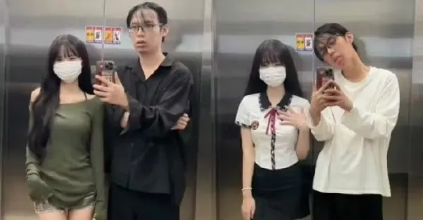 邋遢男天天曬「與女友電梯自拍」,被嗆快去洗頭,「女方口罩一拉下」網友全爆跳