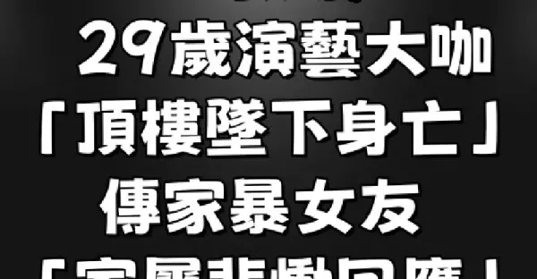 震驚!29歲演藝大咖「頂樓墜下身亡」...傳家暴女友「家屬悲慟回應」