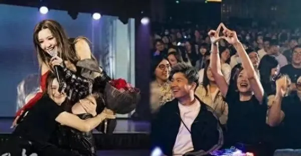 44歲阿嬌在陳慧嫻演唱會,黑裙長靴大秀美腿,網友:微胖界天花板