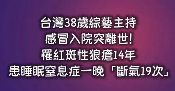 台灣38歲綜藝主持, 感冒入院突離世!罹紅斑性狼瘡14年 患睡眠窒息症一晚 「斷氣19次」