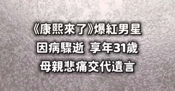《康熙來了》爆紅男星因病驟逝享年31歲 母親悲痛交代遺言...