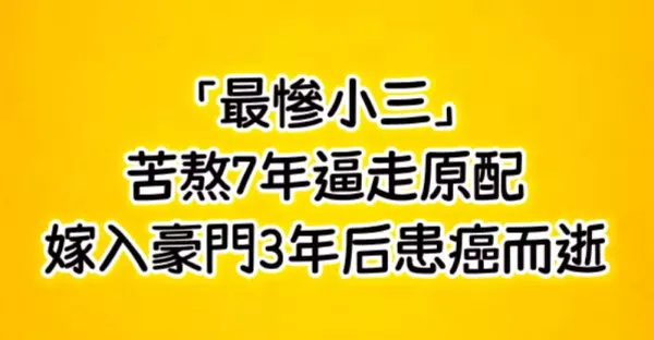 「最慘小三」苦熬7年逼走原配,嫁入豪門3年後患癌而逝!