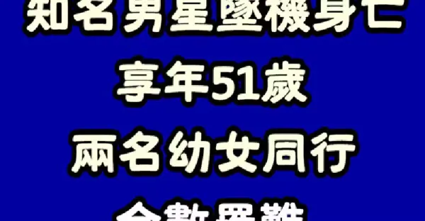 驚傳假期出事!知名男星「墜機意外身亡」享年51歲 「2名幼女同行」全數罹難:求救對話曝光