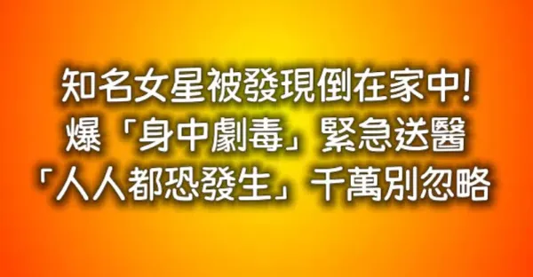 知名女星被發現倒在家中!爆「身中劇毒」緊急送醫 「人人都恐發生」千萬別忽略
