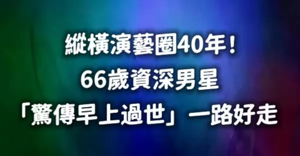 縱橫演藝圈40年!66歲資深男星「驚傳早上過世」一路好走