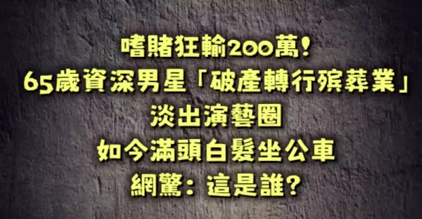 嗜賭狂輸200萬!65歲資深男星「破產轉行殯葬業」淡出演藝圈 如今「滿頭白髮坐公車...」網驚:這是誰?