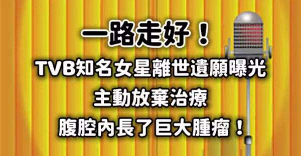 一路走好!TVB知名女星離世遺願曝光,主動放棄治療,腹腔內長了巨大腫瘤!!!