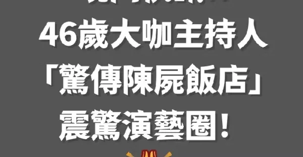 晚間快訊/46歲大咖主持人「驚傳陳屍飯店」震驚演藝圈!!