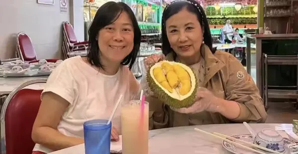 78歲汪明荃在新加坡,和親友聚餐,還去吃了榴槤,晚年生活好快樂
