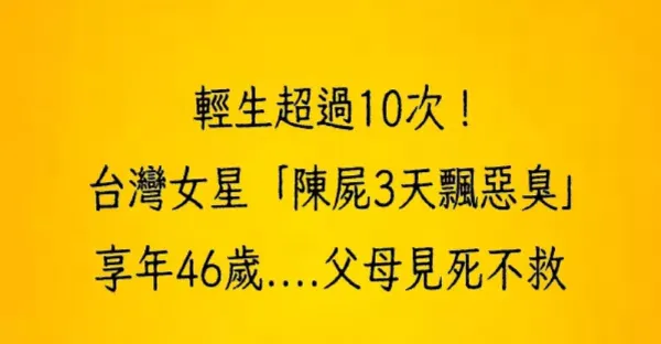 輕生超過10次!台灣女星「陳屍3天飄惡臭」享年46歲....父母見死不救!