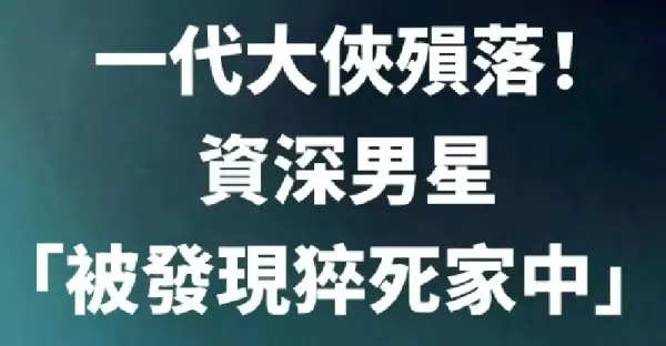 今日午間快訊!一代大俠殞落!資深男星「被發現猝死家中」享壽65歲