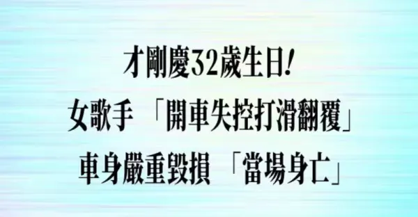 才剛慶32歲生日!女歌手「開車失控打滑翻覆」 車身嚴重毀損「當場身亡」