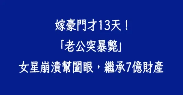 嫁豪門才13天!「老公突暴斃」女星崩潰幫闔眼 繼承7億財產!!