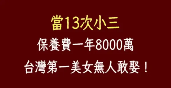 當了13次小三,一年保養費高達8000萬!這位被譽為「台灣第一美女」竟無人敢娶