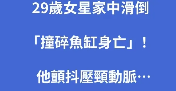 29歲女星家中滑倒「撞碎魚缸身亡」! 他顫抖壓頸動脈…