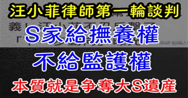 汪小菲律師第一輪談判,S家給撫養權不給監護權,本質就是爭奪大s遺產!