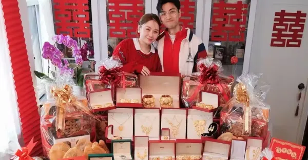 香港女星過大禮!超多金飾從桌子鋪到地,排場誇張准岳母走不出來