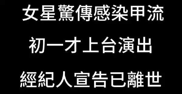 噩耗! 女星驚傳感染甲流「搶救多天無效」經紀人宣告離世 #初一才上台演出