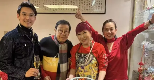 陳松伶回香港過年,穿紅衣吃年夜飯喜慶,小9歲丈夫也在全場最高