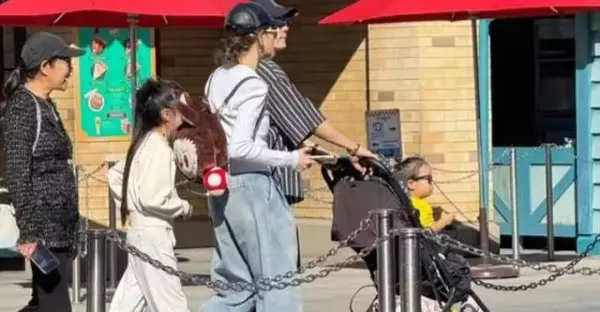 李承鉉一家五口度假,兒子扎辮子,小臉圓潤沒下巴比姐姐還像媽媽