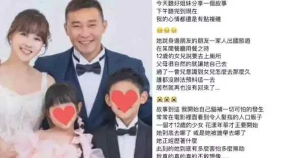 一家人出國旅遊「12歲女兒去廁所再也沒回來」 嚴立婷痛心:不要讓孩子離開視線!