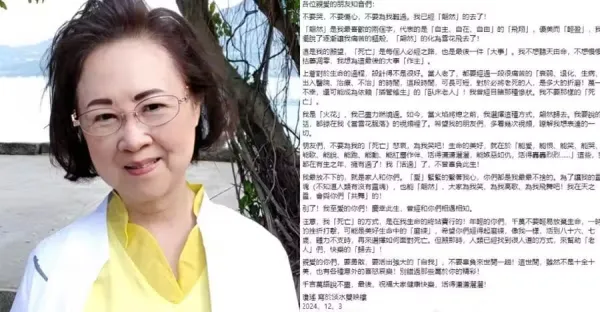 快訊/瓊瑤家中輕生 人生「最後一文」曝光:不要哭!