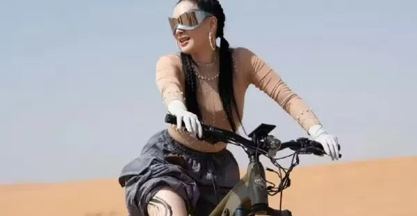 53歲鍾麗緹沙漠開越野車,身材凹凸有致像美人魚,網友:狀態真好