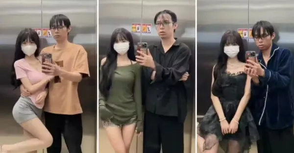 邋遢男天天曬「與女友電梯自拍」,被嗆快去洗頭,「女方口罩一拉下」網友全搖頭了
