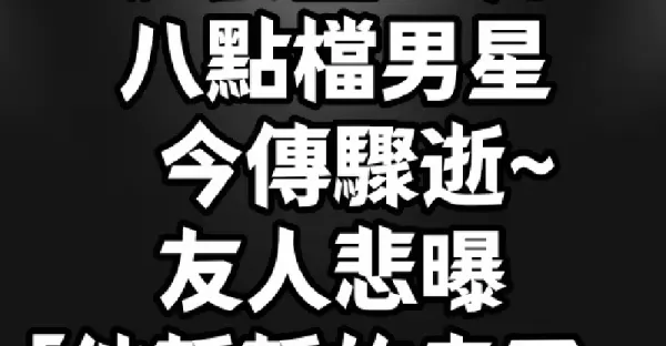 演藝圈噩耗!八點檔男星今傳驟逝~友人悲曝「他靜靜的走了...」