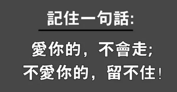記住一句話:愛你的,不會走;不愛你的,留不住!