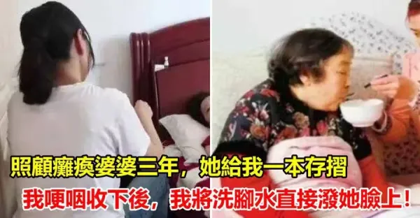 照顧癱瘓婆婆三年,她給我一本存摺我哽咽收下後, 我將洗腳水直接潑她臉上