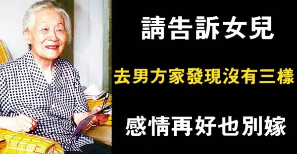 請告訴女兒,去男友家發現沒有三樣,感情再好也別嫁