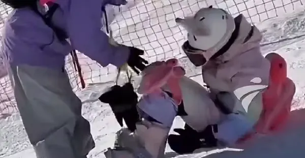 太可愛!全紅嬋新疆滑雪一幕曝光:背粉紅烏龜,曬花式摔跤萌翻了