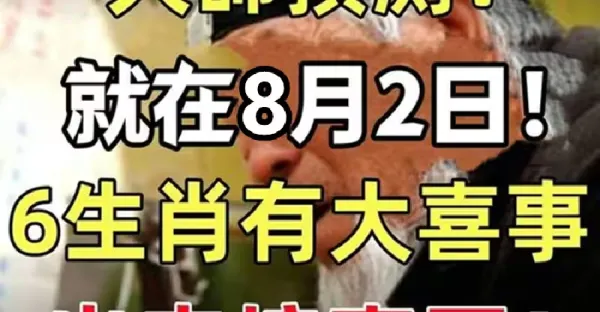 六大生肖出來接喜,8月2日開始有大喜事,好運福氣接涌而至!