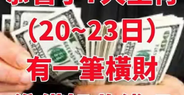 恭喜了7大生肖,在未來三天( 7月20~23日)即將有一筆橫財!準備好收錢吧!!