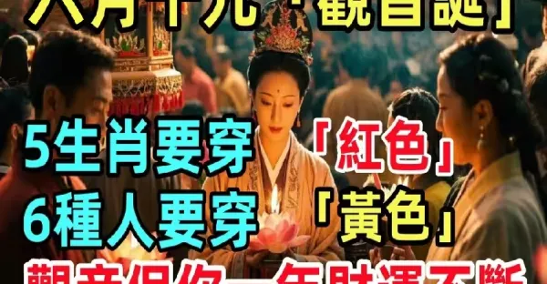 六月十九「觀音誕」,5生肖要穿「紅色」,6種人要穿「黃色」,觀音保你一年財運不斷