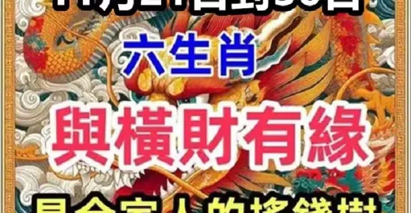 11月21. 22. 23日: 五生肖 偏財極好 令人羨慕 喜中大獎