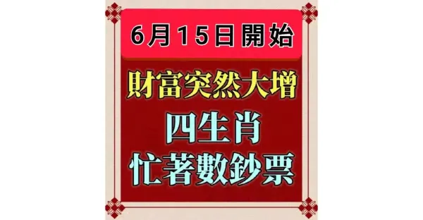 6月15日馬上發橫財,六大生肖開心數鈔票