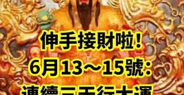 伸手接財啦!6月13~15號連續三天行大運,發大財的生肖!