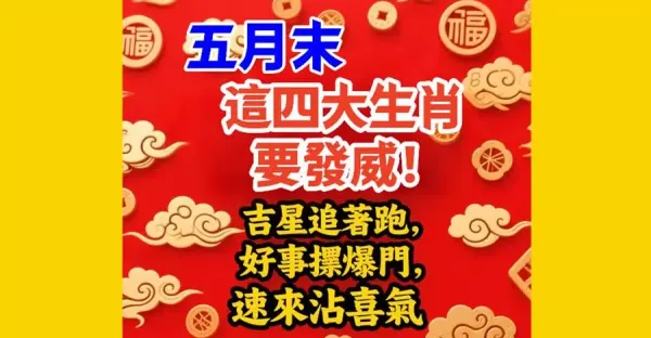 五月末這四大生肖要發威!吉星追著跑,好事擠爆門,速來沾喜氣