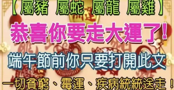 【屬豬 屬蛇 屬龍 屬雞】恭喜你要走大運了!端午節前你只要打開此文,一切貧窮、霉運、疾病統統送走!