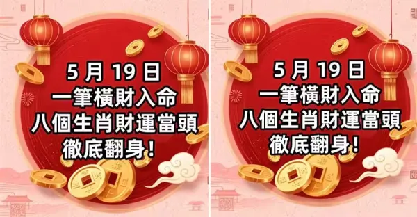 5月19日一筆橫財入命,八個生肖財運當頭