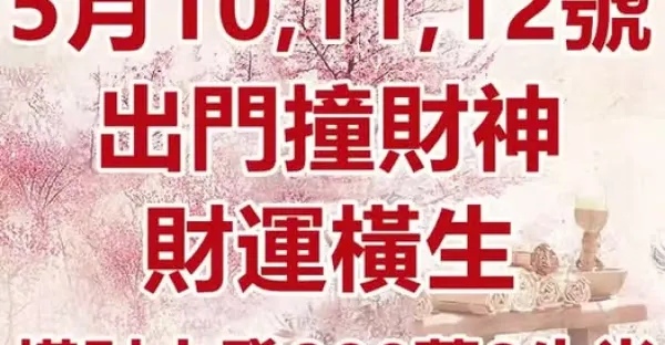 5月10,11,12號出門撞財神,財運橫生,橫財大發的八生肖!