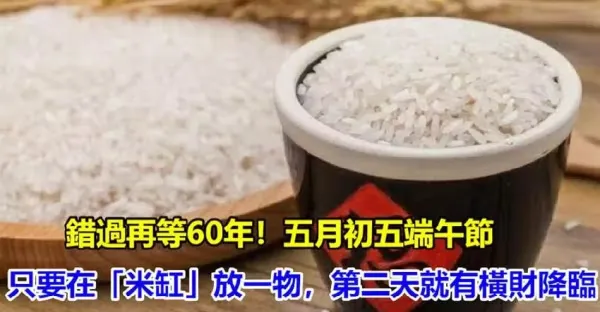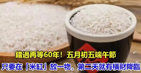 60年一遇!五月初五端午節,只要在「米缸」放一物,第二天就有橫財降臨,好運一路旺到底!