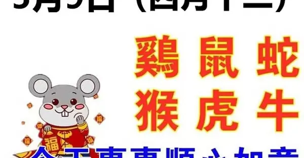 5月9日生肖運勢_雞、鼠、蛇大吉!