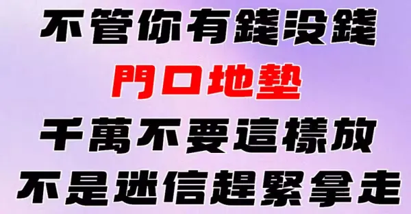 不管你有錢沒錢,門口地墊千萬不要這樣放,不是迷信,趕緊拿走